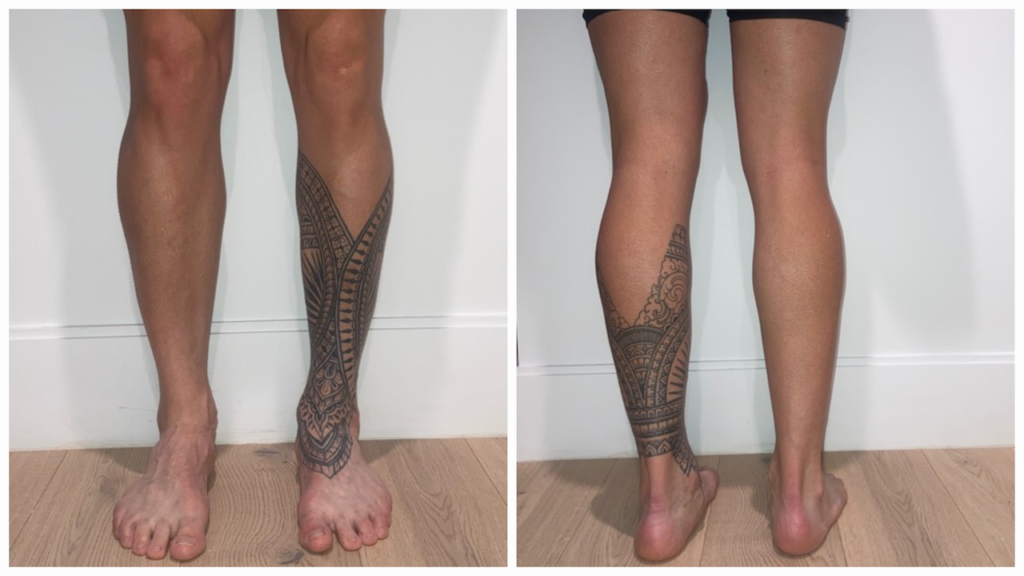As you can see above, it appears as though Jason’s kneecaps are a bit more centered/inward in comparison to where his tibia is. You can note this by comparing the tibial tuberosity location in relation to the knee cap position. Not a crazy amount of course.