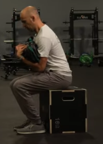 When flexing the neck, the thorax tilts anteriorly, which pushes the abdominal contents significantly downward, much like we see when someone has a pooch belly. As you can imagine, this position negatively impacts our ability to create intrathoracic and intraabdominal pressure.
