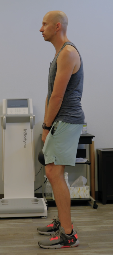 If the ribcage is too far forward (aka rib flare), then you’ll end up looking too far up. If you have a slouched posture with A TON of rectus abdominis (6-pack) muscle activity, you’ll look too far down. If you overbrace, well poop, you won’t be able to MOVE.