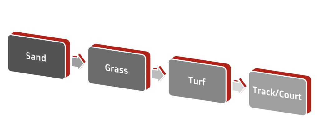 Now, just like anything else in training, I believe a progression should be followed for the surface the athletes train on in this order: